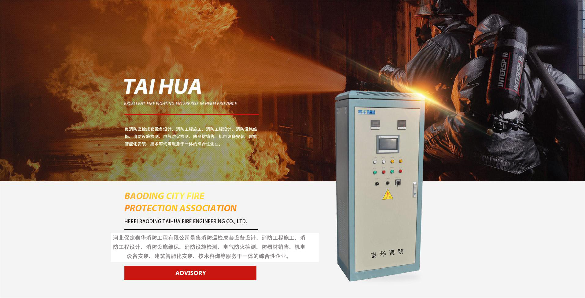 河北保定泰華消防工程有限公司是集消防巡檢成套設(shè)備設(shè)計、消防工程施工、消防工程設(shè)計、消防設(shè)施維保、消防設(shè)施檢測、電氣防火檢測、防器材銷售、機(jī)電設(shè)備安裝、建筑智能化安裝、技術(shù)容詢等服務(wù)于一體的綜合性企業(yè)。